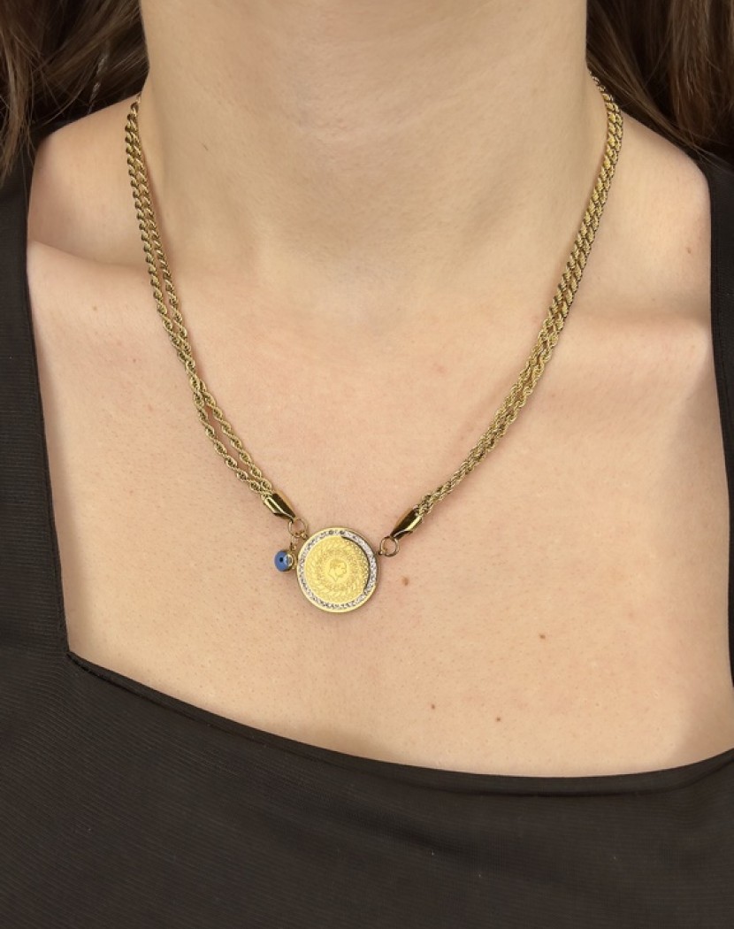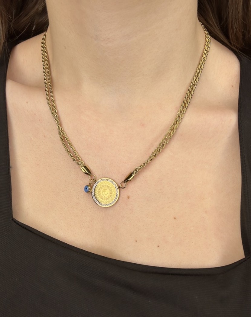 Çeyrekli Model No 7 Altın Kaplama Çelik Kolye