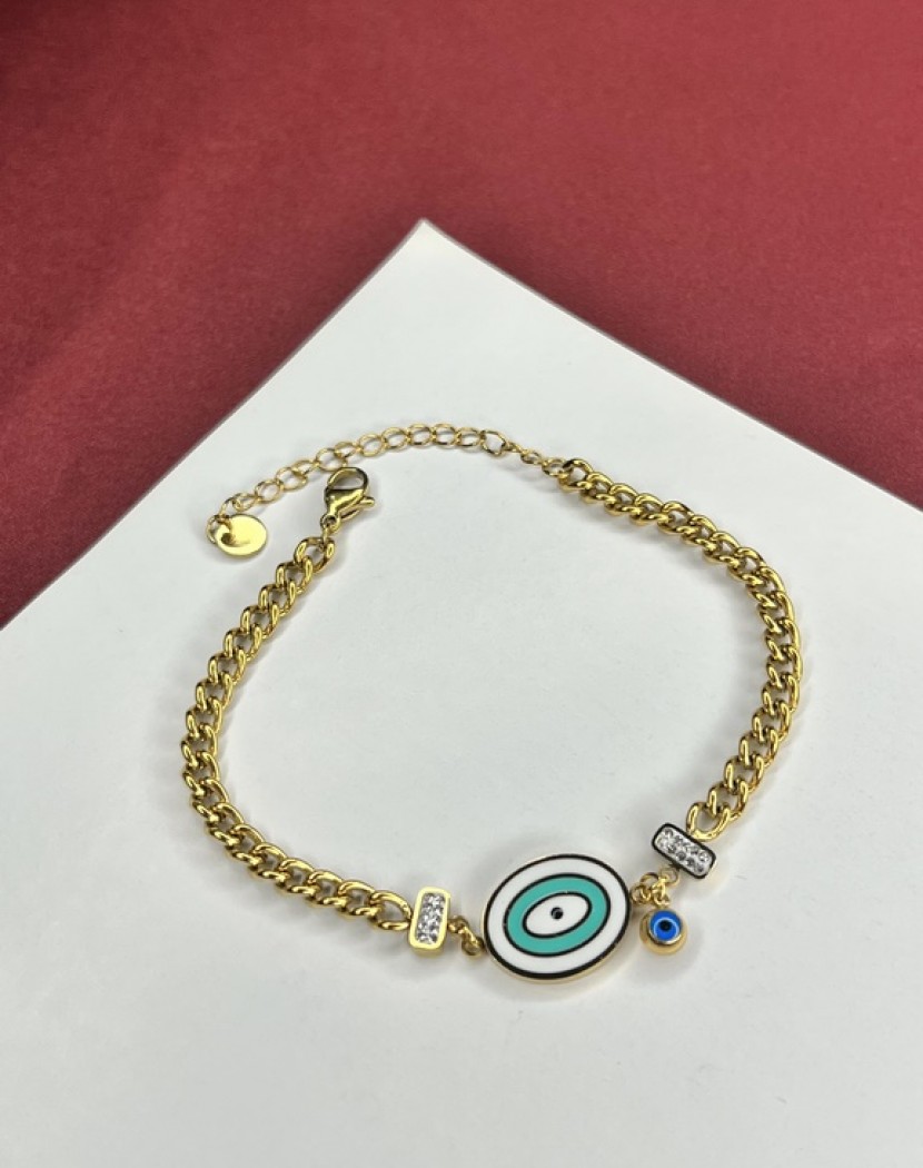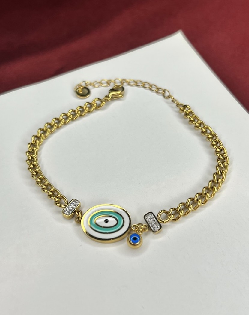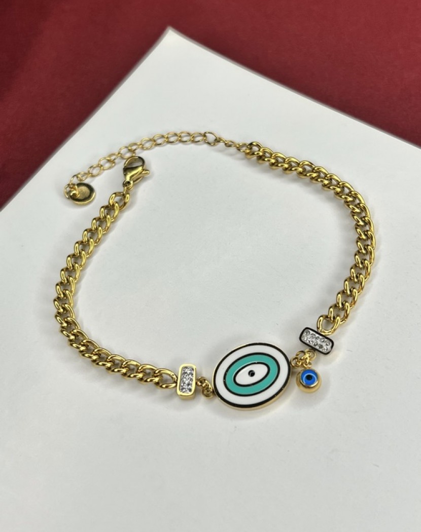 Halka Model Zincir Ortası Nazar Boncuklu Model Altın Kaplama Çelik Bileklik