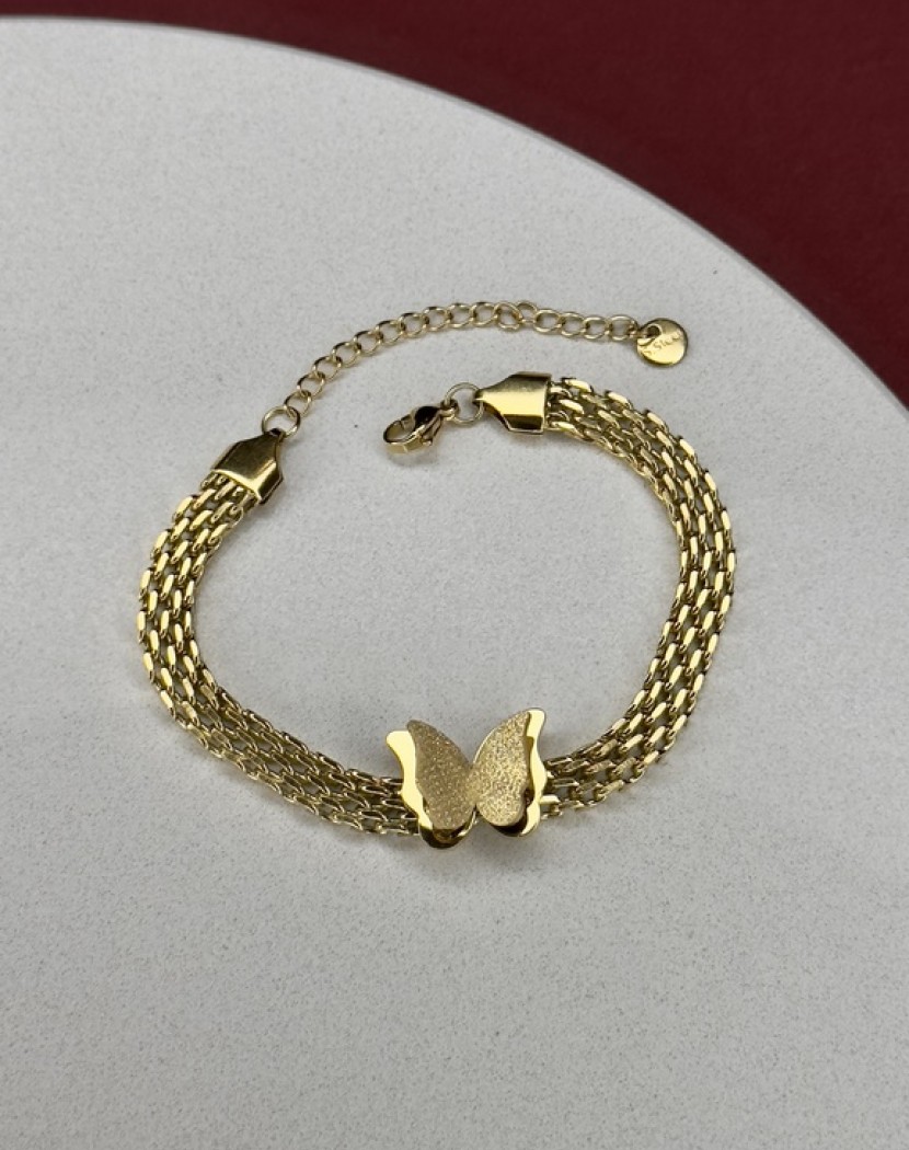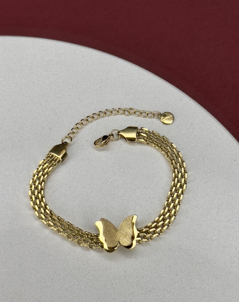 Kalın Zincir Simli Yeni Kelebek Model Altın Kaplama Çelik Bileklik