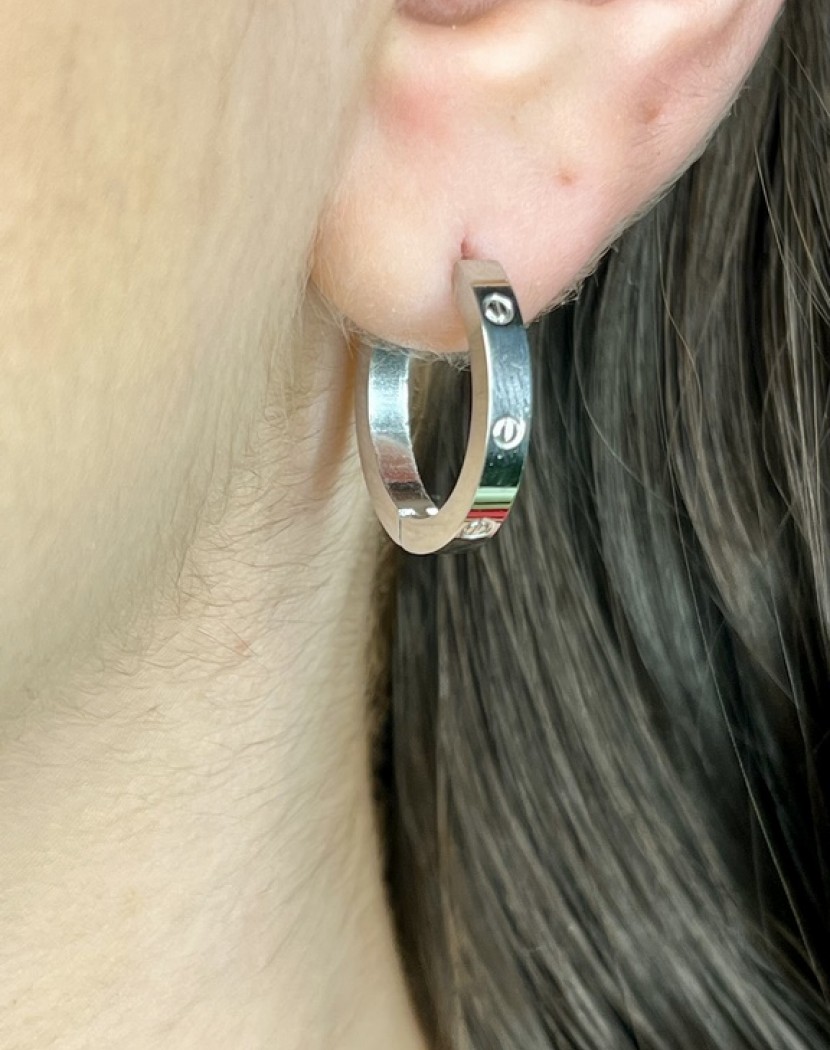 Klasik Taşlı C Model Beyaz Altın Kaplama Çelik Küpe