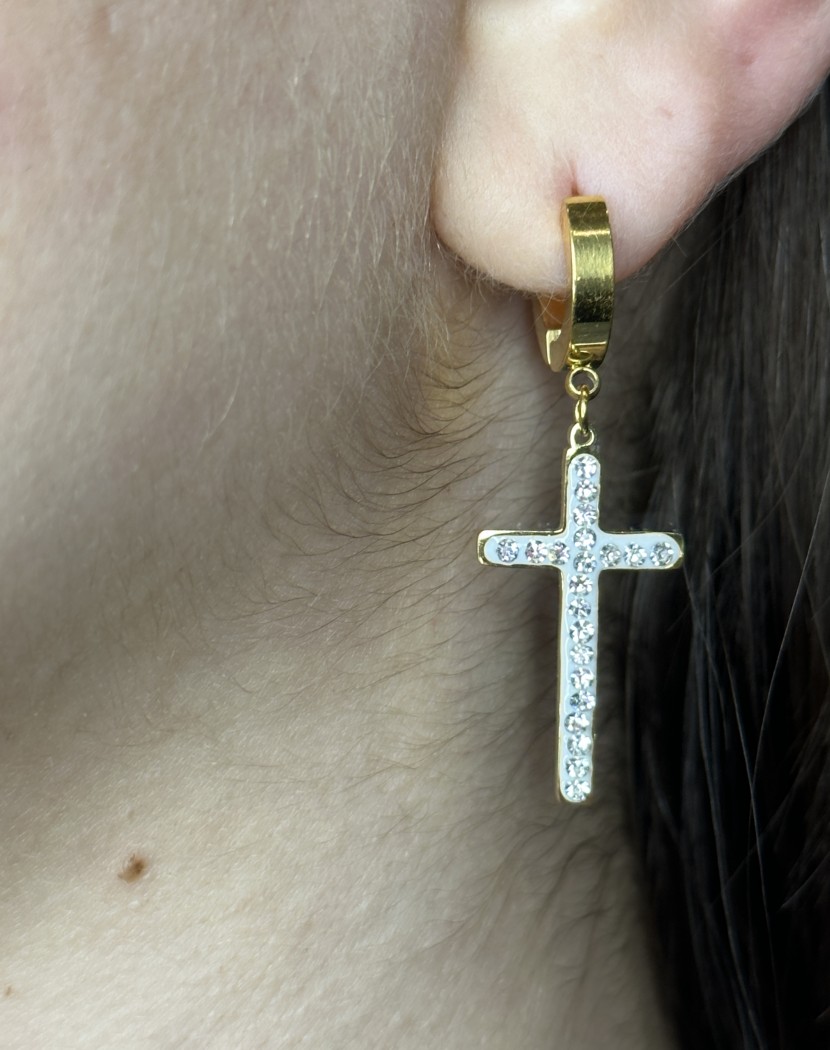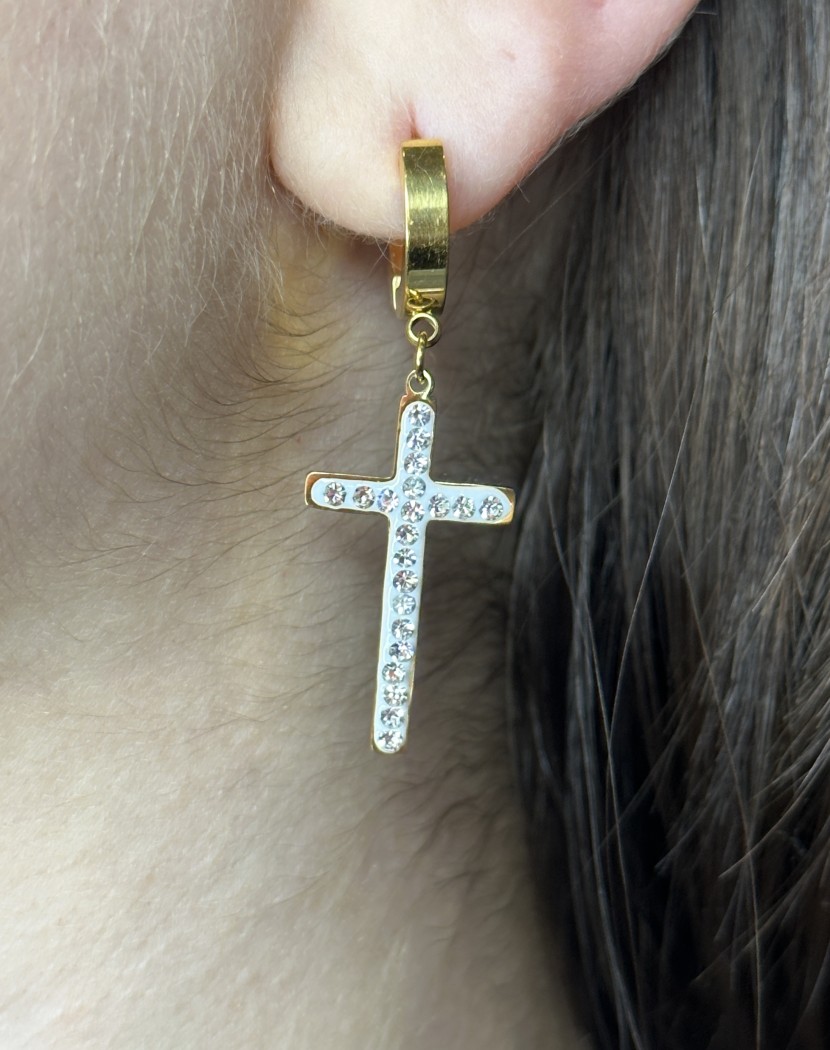 Artı Taşlı Model Altın Kaplama Çelik Küpe