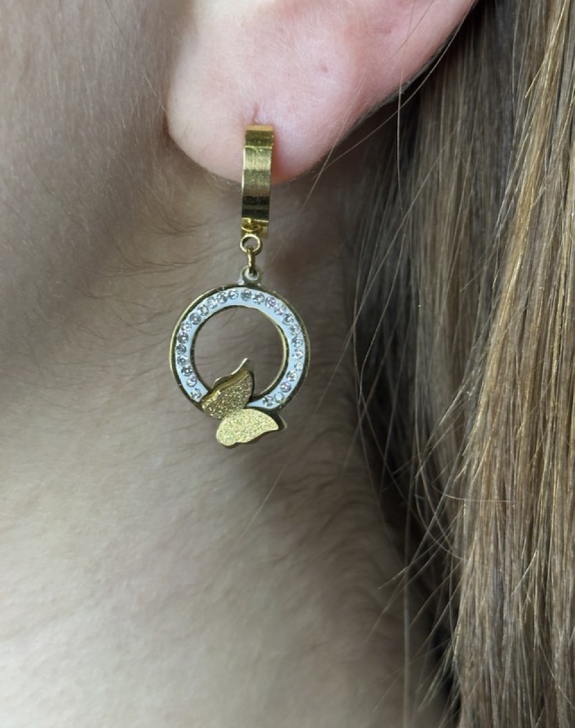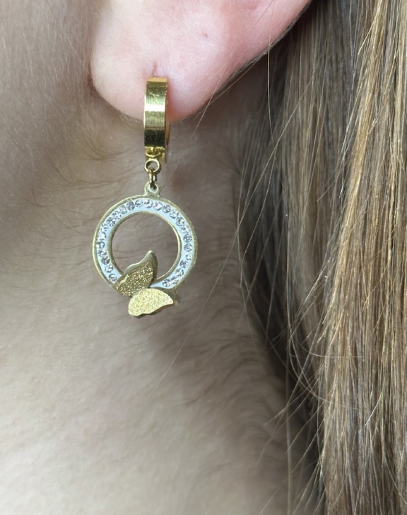 Taşlı Kelebek Model Altın Kaplama Çelik Küpe