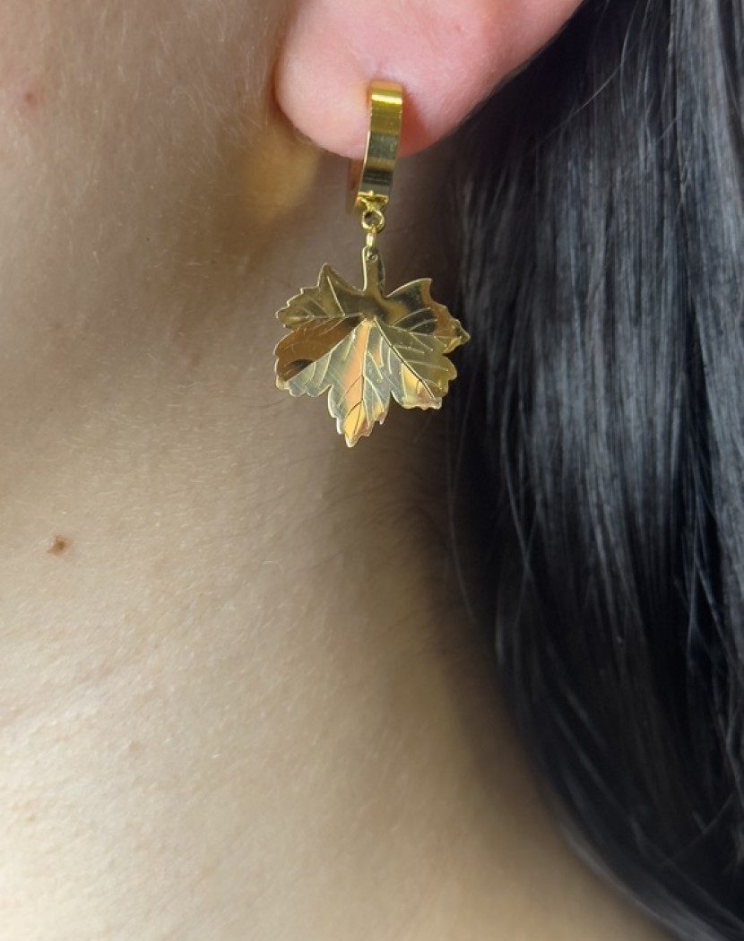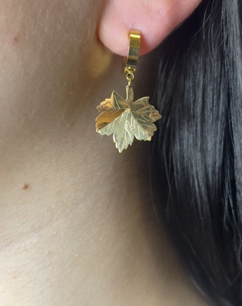 Üç Boyutlu Yaprak Model Altın Kaplama Çelik Küpe