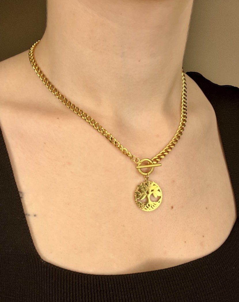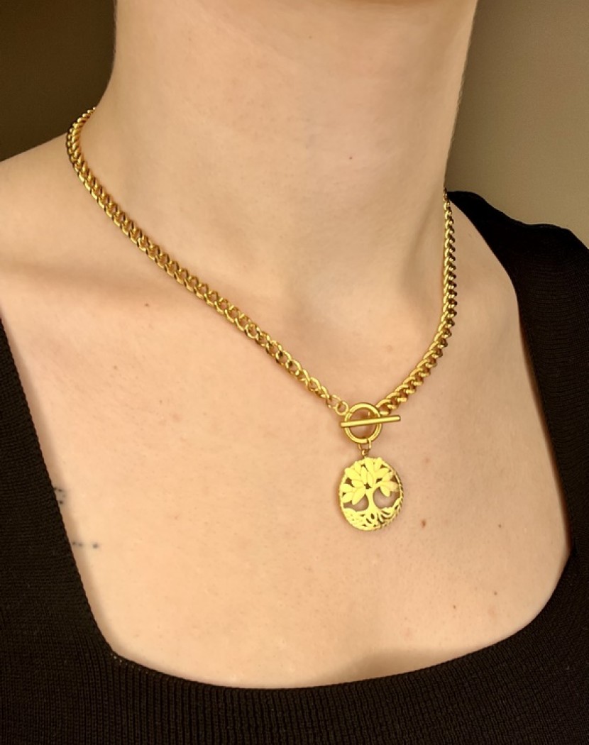 Yaşam Kelebeği Detaylı Altın Kaplama Çelik Kolye