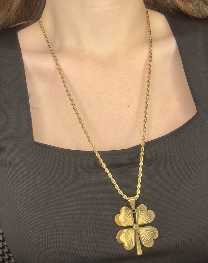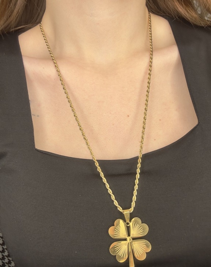 Yeni Burgu Zincir (60+5 CM) Yoncalı Model Altın Kaplama Çelik Kolye