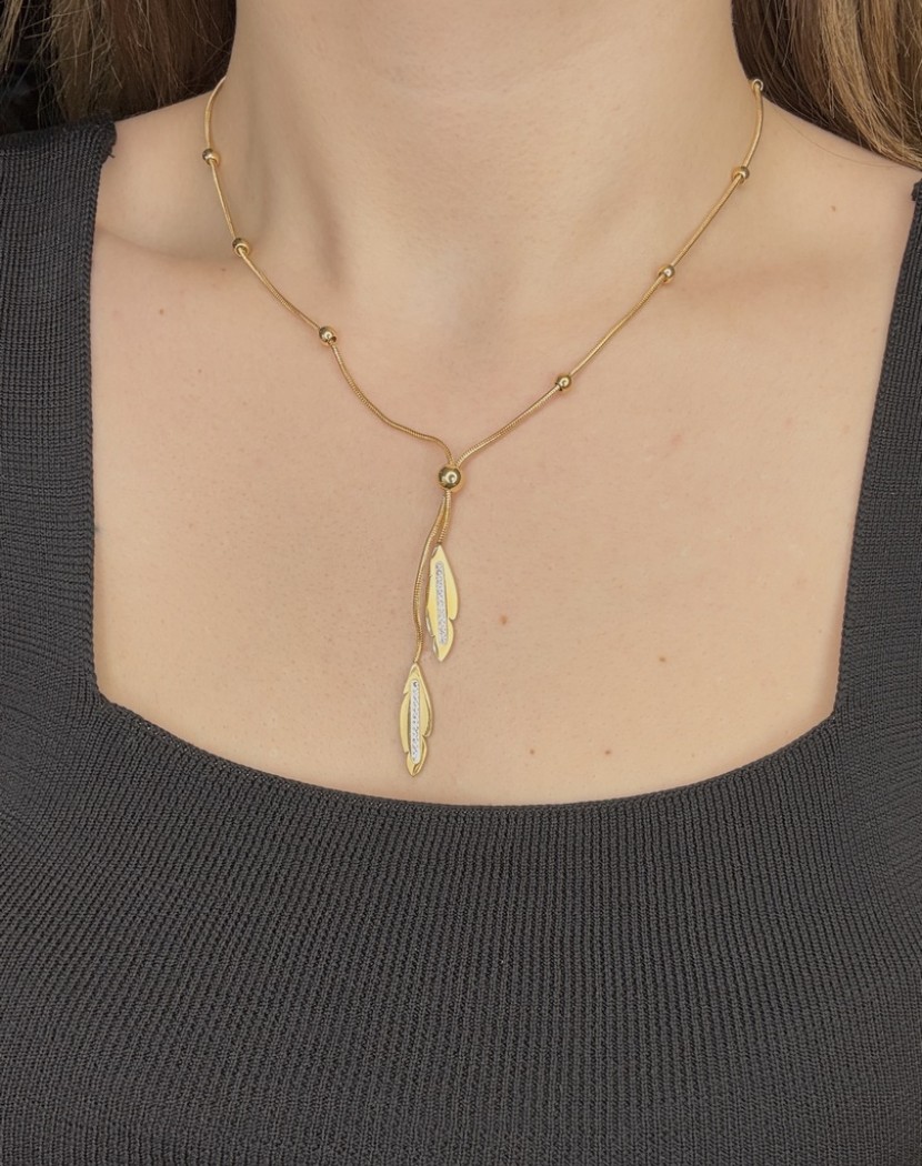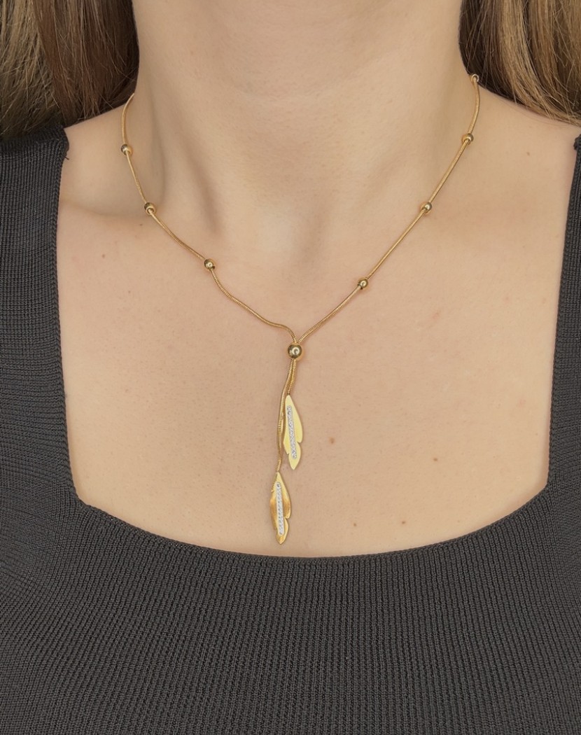 Yeni Çift Uçlu Başak Model Altın Kaplama Çelik Kolye