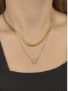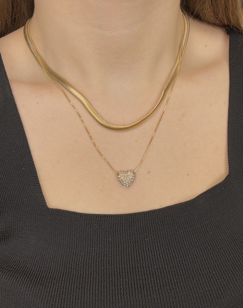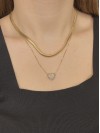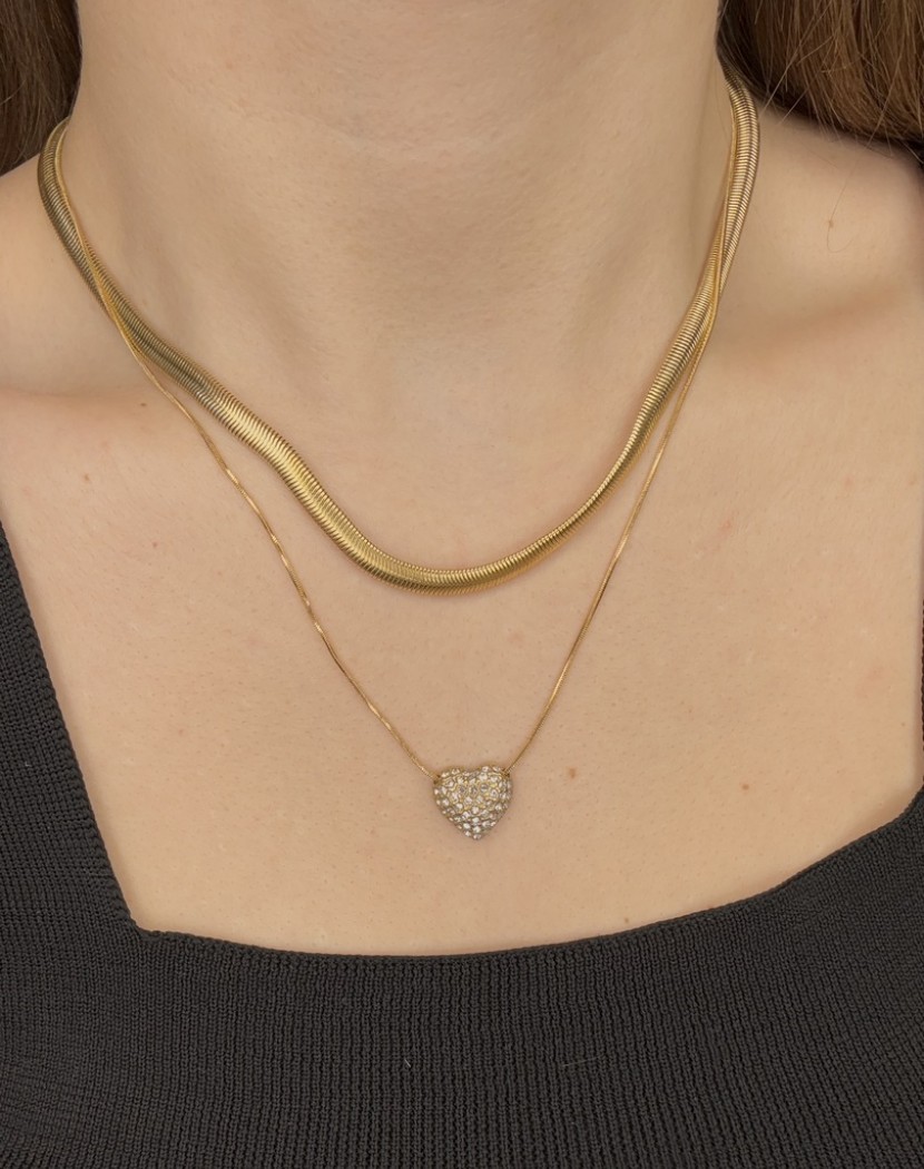 Yeni Çift Zincir Taşlı Kalp Detaylı Altın Kaplama Çelik Kolye