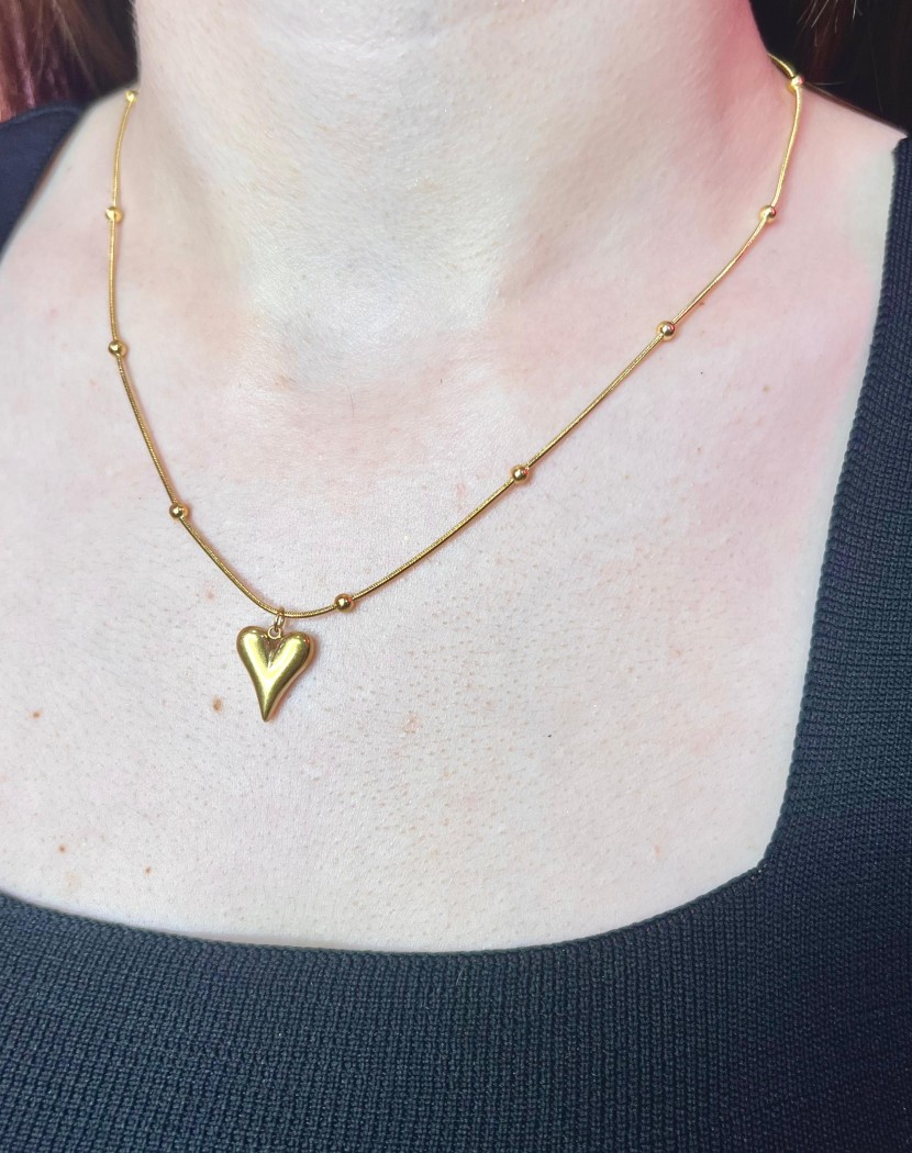 Yeni Dolgulu Kalpli Model Altın Kaplama Çelik Kolye
