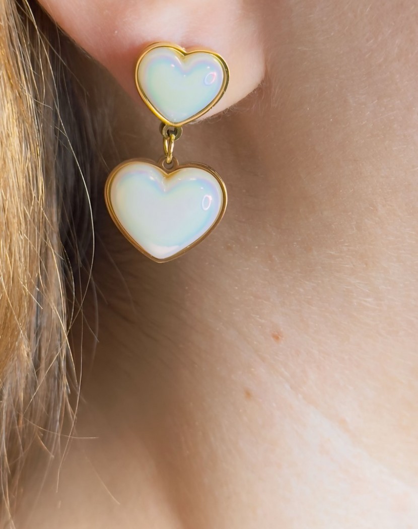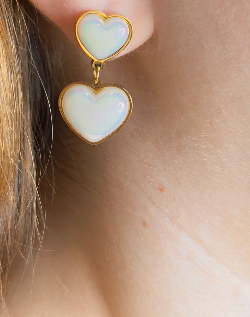 Yeni Sedef Taşlı Kalpler Model Altın Kaplama Çelik Küpe