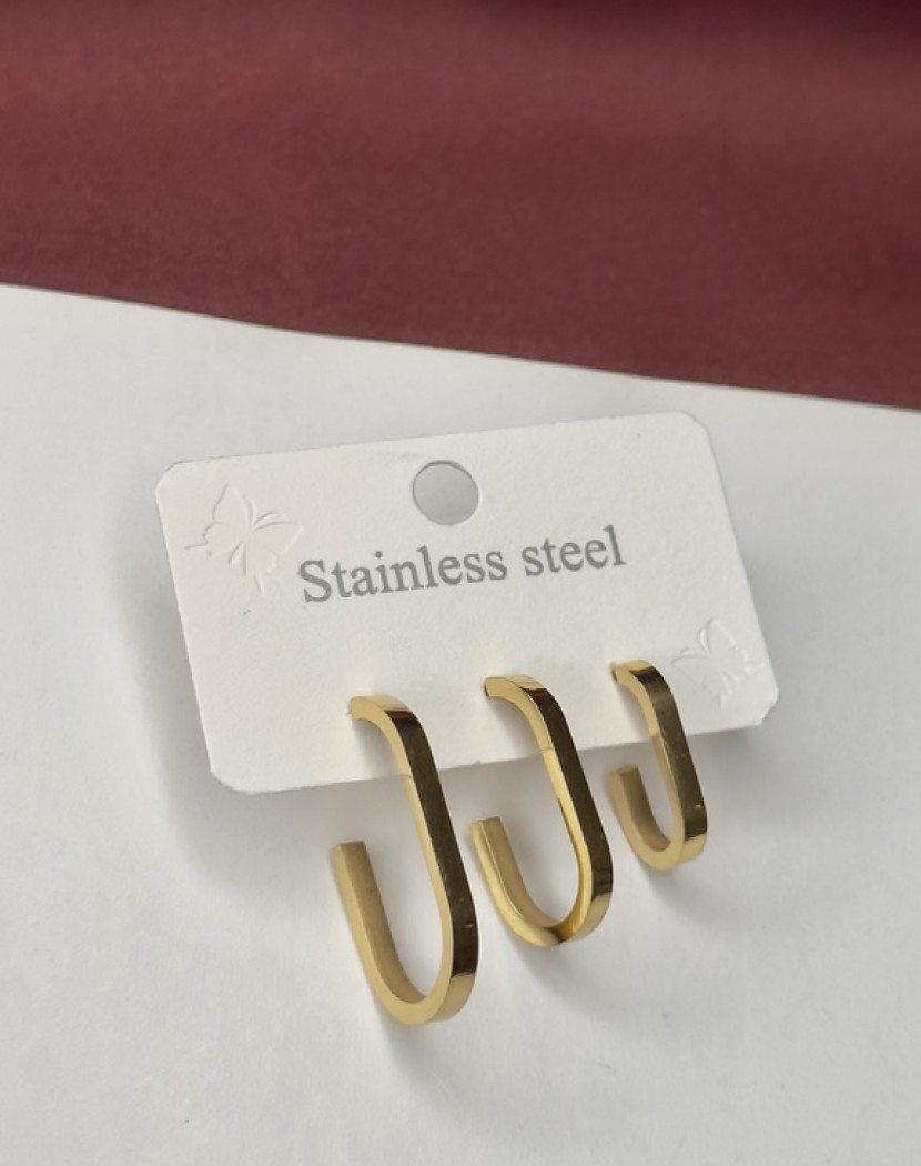 Çoklu Elips Model Altın Kaplama Çelik Küpe