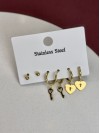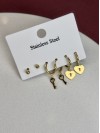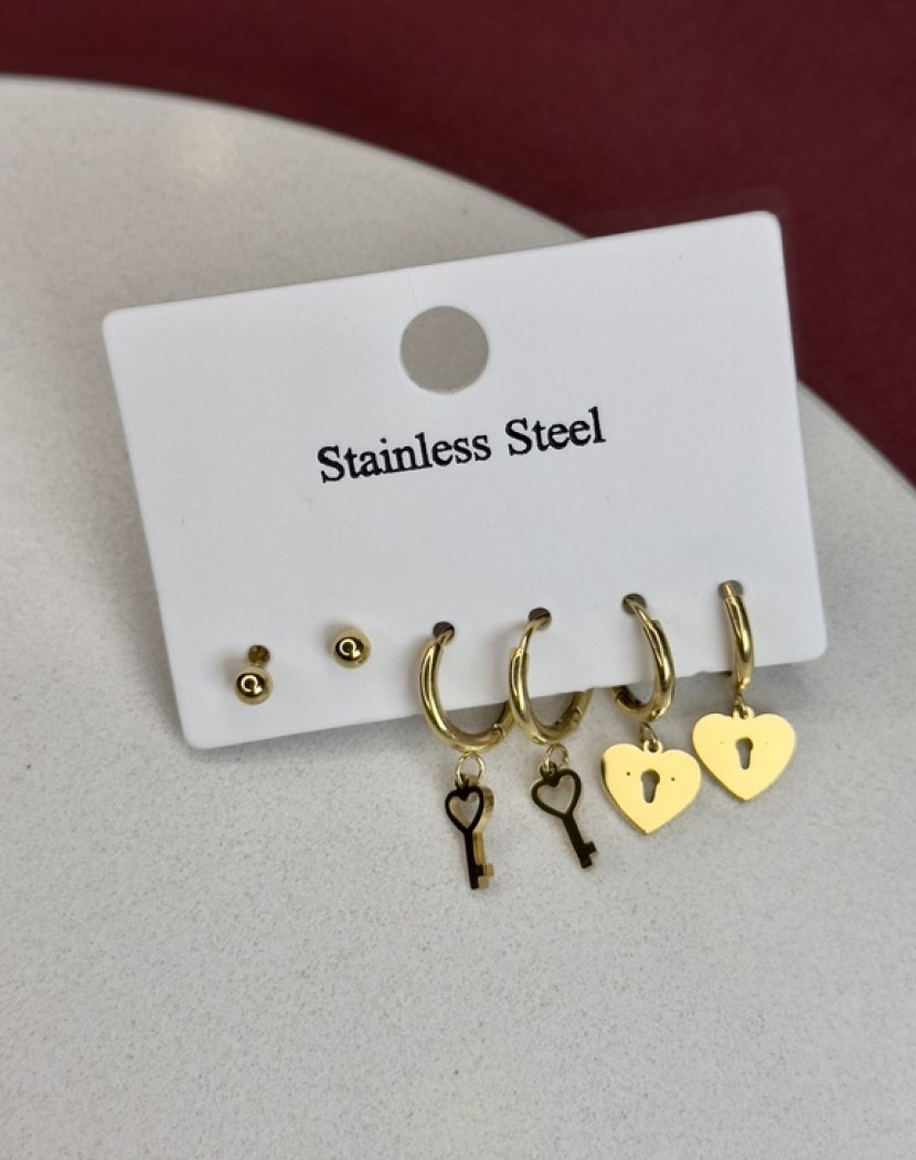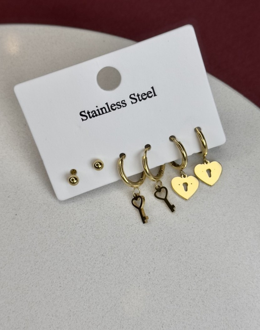 Çoklu Kilitli Kalp Model Altın Kaplama Çelik Küpe