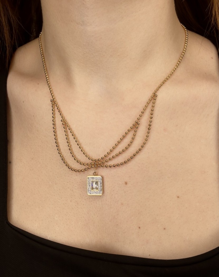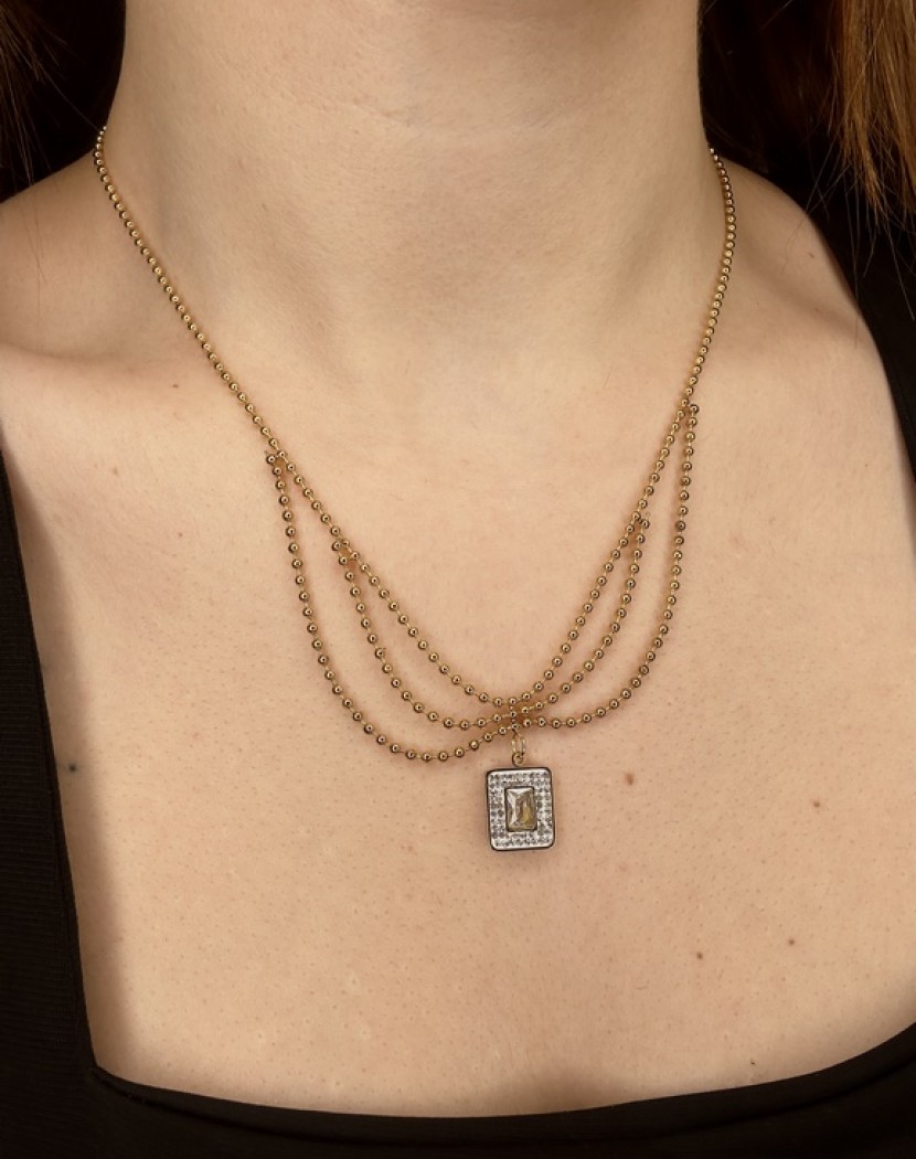 Çoklu Zincir Baget Taş Model Altın Kaplama Çelik Kolye