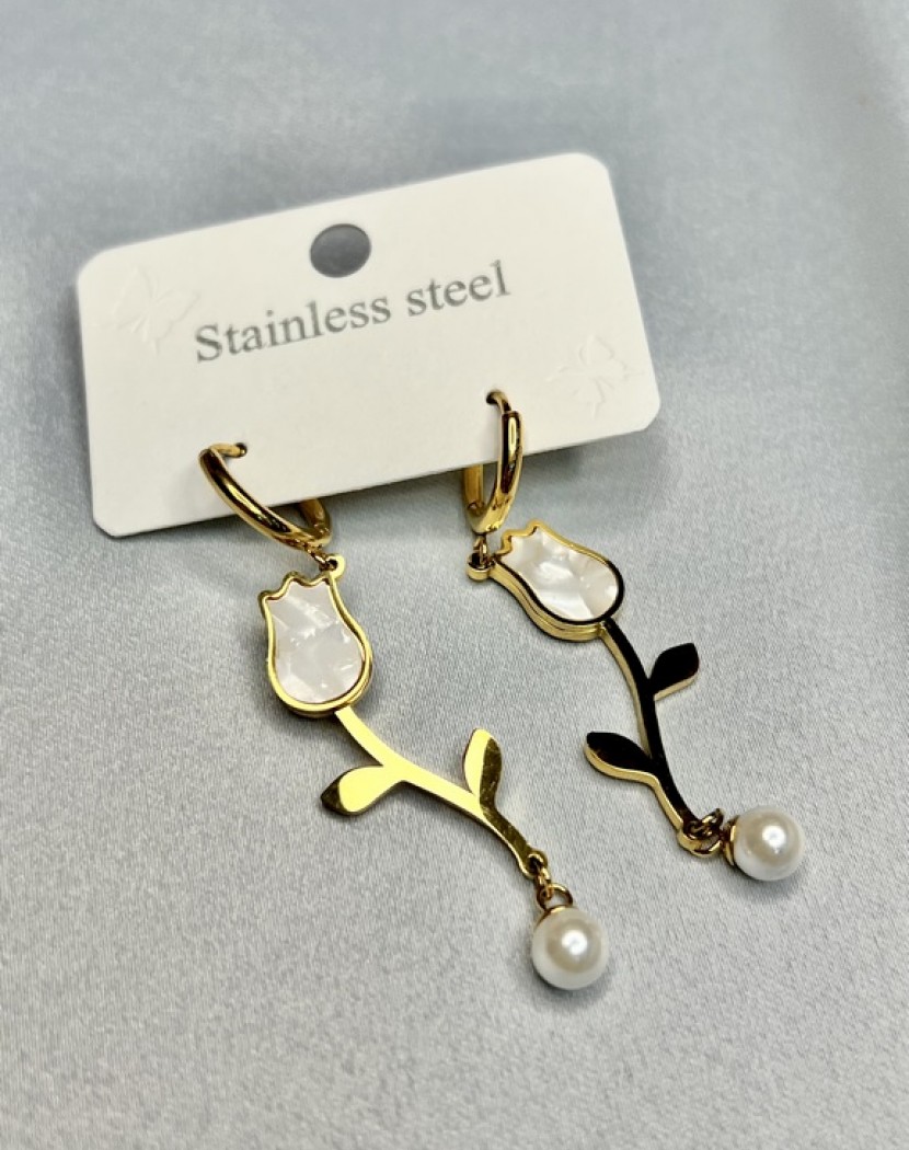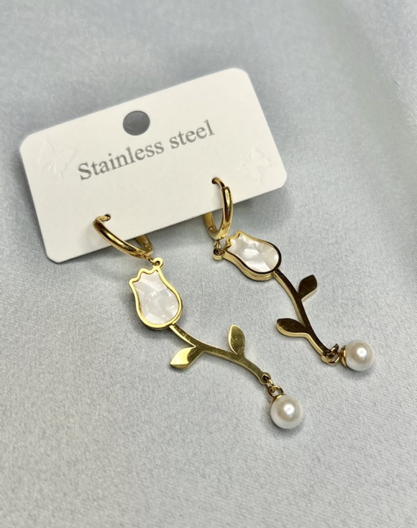 Lale Model Altın Kaplama Çelik Küpe