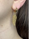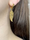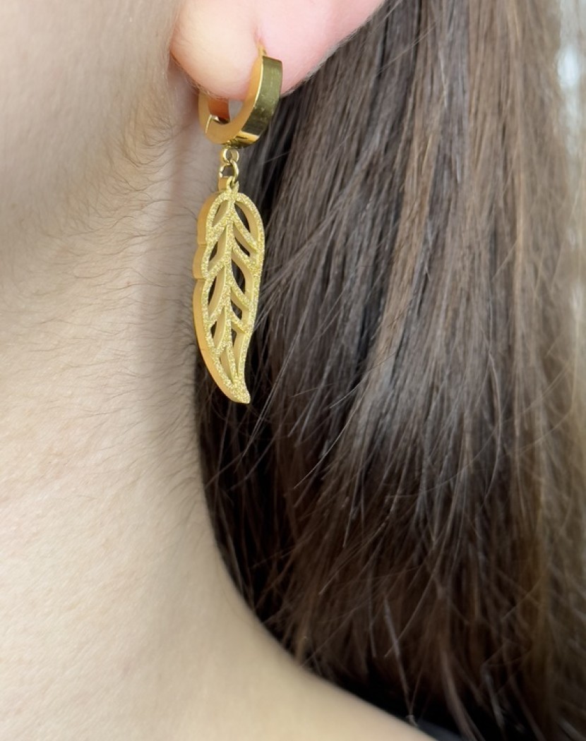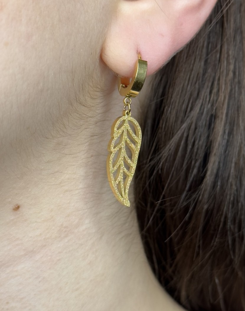 Simli Yaprak Model Altın Kaplama Çelik Küpe